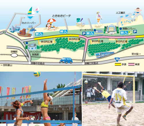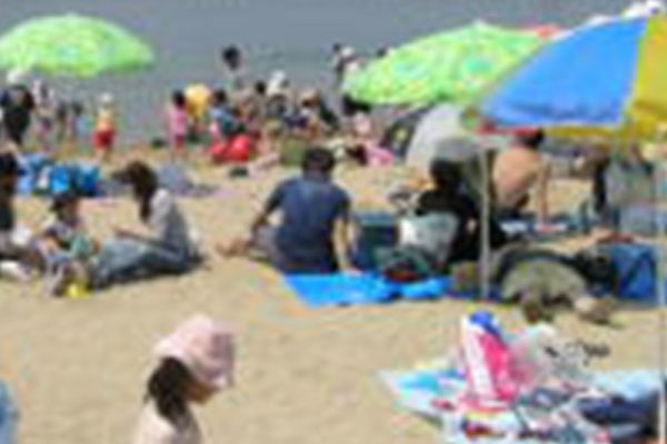 里海公園でビーチバレーや海水浴で遊ぶ