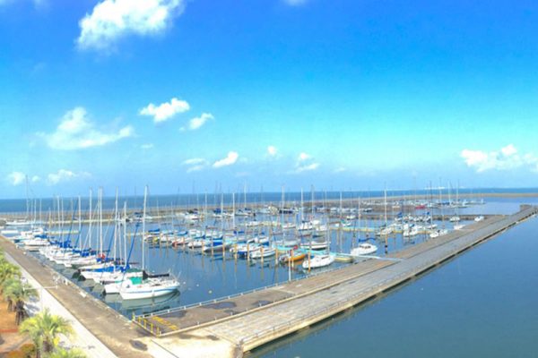 ヨットハーバーから夕陽を眺める