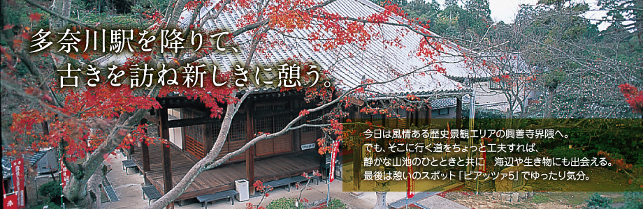 「土佐日記」に「多奈川というところをからくいそぎて和泉の灘というところにいたりぬ」と記されているのを記念してピアッツァ5に建立されました。